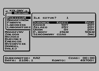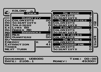 | | | | Players: | 5 | | | | Comment: | Remastered "Kolony" (Mirage Software) (1990).