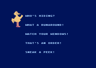 | | | | Genre: | Adventure Hi-Res game Hi-Res title screen Text