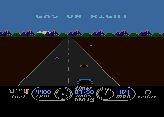 Cheat: Tilt joystick in 2nd port [bottom]+[left]+fire] to speed up.