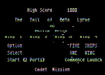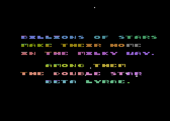| | | | Players: | 4 | | | | Comment: | Released in Germany as "Beta Lyrae - Kampfstern der Galaktik" (1985) (Happy Software). | | |