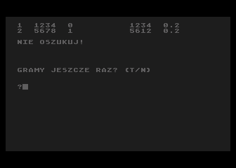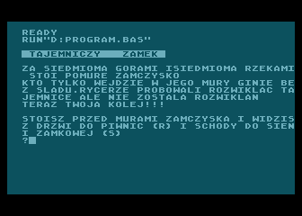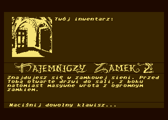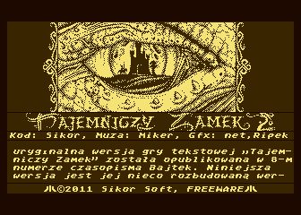 | | | | Players: | 1 | | | | Comment: | Remake of "Tajemniczy Zamek" (1986) (Bajtek). | | |