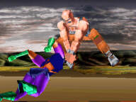 Before this game came out, it was one of the most anticipated games on the Jag. I'd heard rumor after rumor on this one. I was pumped up for it, so I made sure I had the cash to order it with overnight delivery. It was well worth it. It opens up with some cool music and the beat of the music seems to move the camera around for the intro. I was saying to myself "I hope the camera doesn't move like that in the game!". I got to the select screen and picked my dude. The game started and the camera flew around the fighters in the smoothest way and the Gatekeeper said "round one... ha ha ha ha!" in a totally deep voice. It makes the guy off of MK sound like he just got a swift kick to the 'nads! Anyway, I suddenly noticed that the music was pretty cool too. There are 21 total tracks on it, but they sacrificed the length of each tune for the number of total tunes. The music is mostly guitar-ish grunge stuff and it loops well. The graphics are slick and the texture mapping is done very well to say the least. The polygon count is less than the competition, but the big t-maps make up for that. Every part of the character's bodys look totally 3D, even though they are just flat polygons. Amazing! The play areas are very huge and the backgrounds are smoothed out well. The game is pure 3D. Move side to side anywhere you want. The control is made up of punches, kicks, and an avoid. No block... Avoid! Thats a cool change. There are a ton of special moves and they are executed with ease, with the slightest amount of practice. Brutal and devastating combos are linked up or stacked onto special moves. Complete with a combo counter. You can link up multiple combos, but you won't get credit for them on the counter (dangit!). For the most part, the moves are very cool and are complimented with voice-overs. Each battle goes on until you deplete the opponents health bar ot knock them into the edge which electrocutes the victim. There is blood, but it leaves the screen too fast. The game has a unique feature of stealing two moves from each defeated opponent. You can build up a character and then save him/her with a password. Use this password against computer or human opponents. This makes for great replay value. Each character has a variety of special moves and one move that is a signature move that is unstealable. One thing I would have hoped to have seen in FFL was light sourcing of some type. This effect would have made the game look even more unbelievable. The replay mode is cool, although I would have liked to have seen a auto replay of the last few seconds of the match. As it stands, FFL is an extremely good attemp at bieng the perfect 3D fighter. Although it's not perfect, it has points over almost all other 3D fighters as well as some have points over it. Now to the categories shall we?