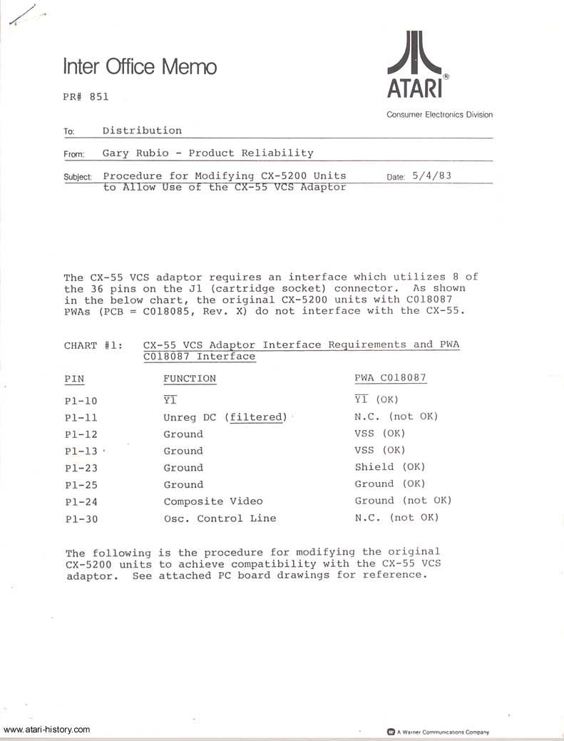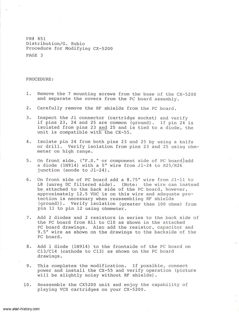 Below are the 3 pages from an Atari Internal Memo detailing the modification.