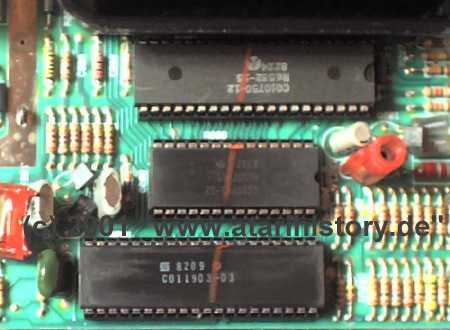 can see, the three chips had sockets. The sockets were removed in later versions.