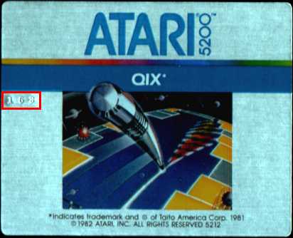 Ever wondered, what those little imprinted numbers on the the top left on the labels mean (inside the red square)? Well, it's quite easy: the first two digits tell us the WEEK of production, the third digit tells the YEAR of production, i.e. this "Qix" (CX5212) was manufactured in the 16th week of 1983. The same "coding"-system was used on several 2600 cartridges.