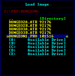 Setting a simple .PRO image to a mode other than 0 has no effect on the emulation.Per-Sector Delay: Some protected games check disk timing to see exactly how long they took to load from disk. To defeat this (rare) kind of check, you can enter a number from 1-99 expressed in 1/60th of a second to delay between the read of each sector inside APE. A number of 40 usually results in a very 'normal 1050'ish speed. Spelunker is known to require a delay of 80-120, though most all games require no delay and therefore load much faster than the original diskette.
