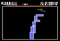 Qix is another in a long line or arcade translations that came out for the Atari 800. Though this game looks like the arcade translation it appears most of the game was written in Basic vs Assembly. Movement is sluggish and the fill utility isn't very snappy. The color scheme takes from Centipede in that the colors come off very dull and low in luster.