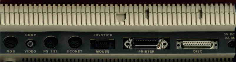 Porty: CENTRONICS, FDD, Joystick. Opcja RS232 i ECONET.
