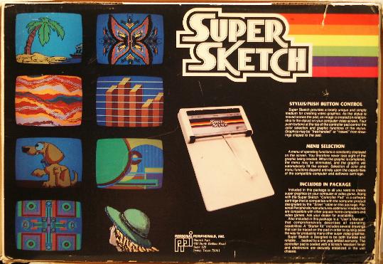 This is a 10" X 14" tablet that lets you slip in a half letter page to trace or freehand a drawing into the computer. Four colors, patterns, fills, custom/grab patterns, save/load, cut/paste, text, brushes, magnify, and tools. I have used this and now prefer it over the Atari/Koala pad software. A convert/gray-scale print utility is on the site.
