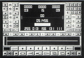 For the Halo Jones project, we decided to use the hi-fi option to send the sampled sounds to a four track tape recorder. The clumsy, aesthetically dismal design of the external hardware is quickly forgiven as the Pro Sound Designer software is booted-up. The main work screen is probably the best designed and most attractive screen of any serious application software for the ST or most other computers. Unlike Replay's restrictive keyboard-only operated screen, the Pro Sound Designer features mostly mouse operated icons. In the centre of the screen is the Waveform Display, an oscilloscope-like representation of the sound entering the ST from the external source which is used to set the volume levels of the incoming sound. Across the bottom of the screen are several icons resembling the controls on an ordinary tape machine and which operate in a similar fashion.