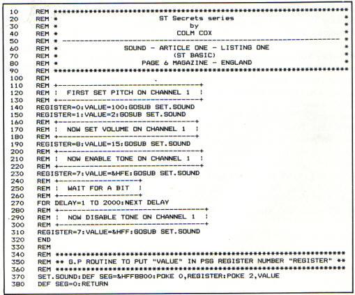 program the PSG from ST Basic. For the BASIC programmer there is no