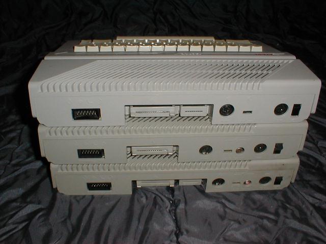 Od góry: 130XE wersja SECAM (bez modulatora), 65XE i 130XE.